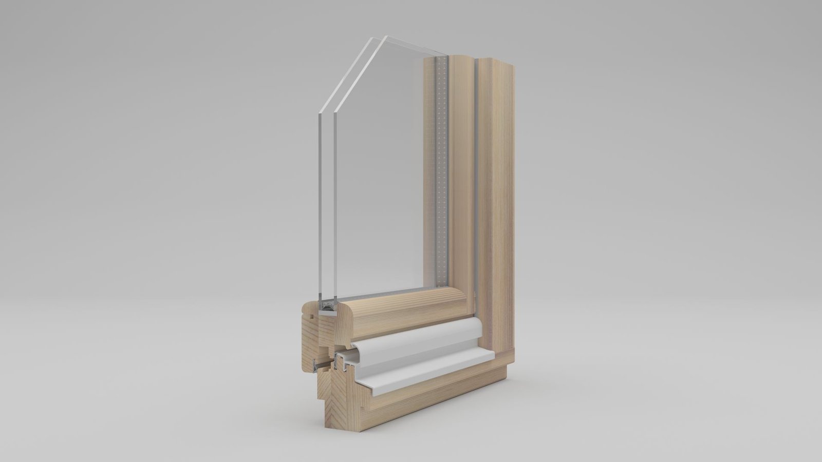 Drveni profil debljine 68 mm je od kvalitetnoga drveta (smreka/jela/ ariš/hrast/ meranti/bor), lijepljen bez vidljivog dužinskog spoja; za bolju prilagodbu s opremom enterijera, prozor se može izraditi iz različitih vrsta drveta.