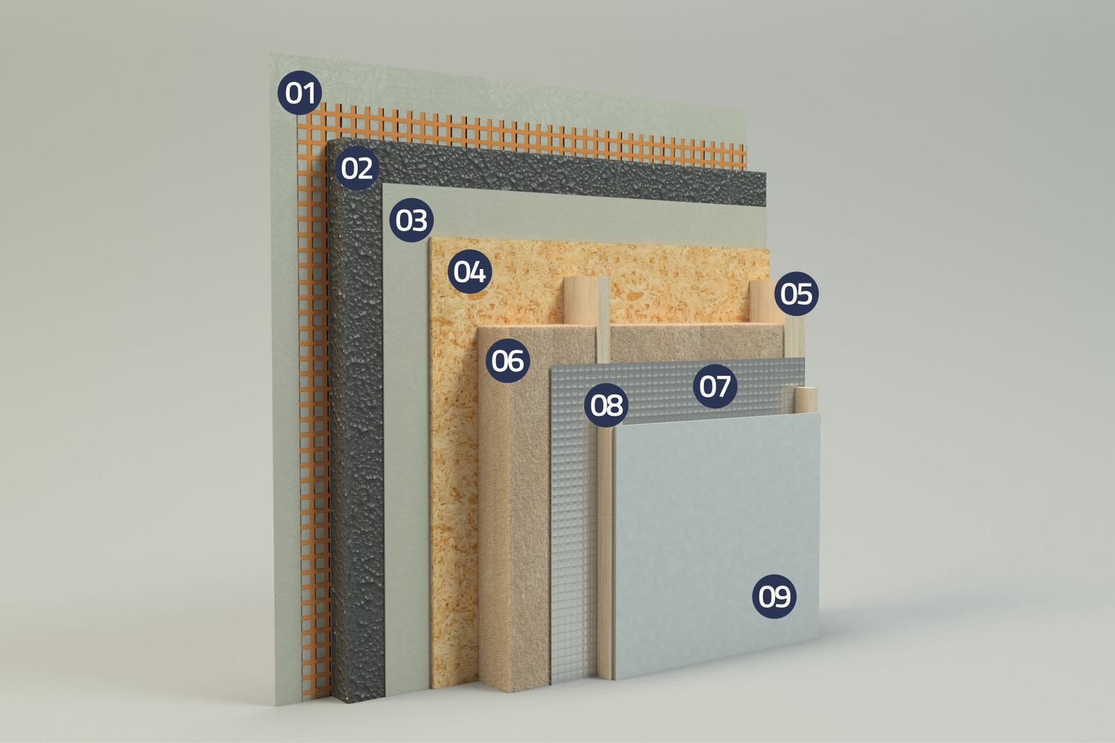 Dvostrukim zidnim oblogama od kamene vune zidovi za Zapadnu Evropu pružaju izvrsnu zaštitu od zvuka i ugodnu klimu za život.